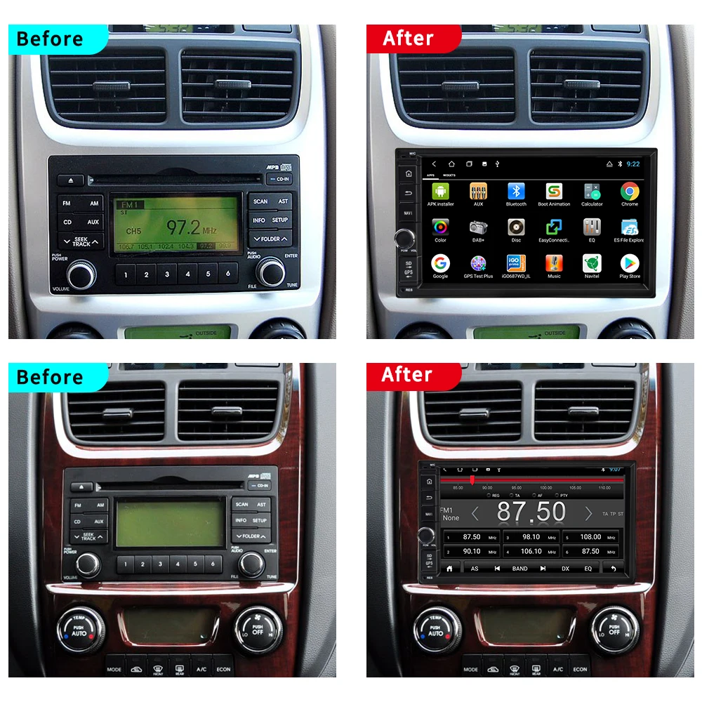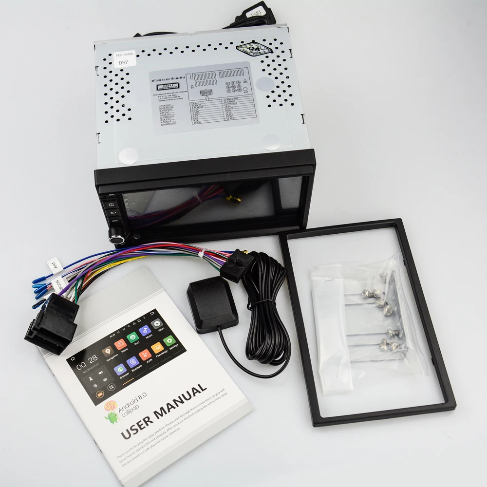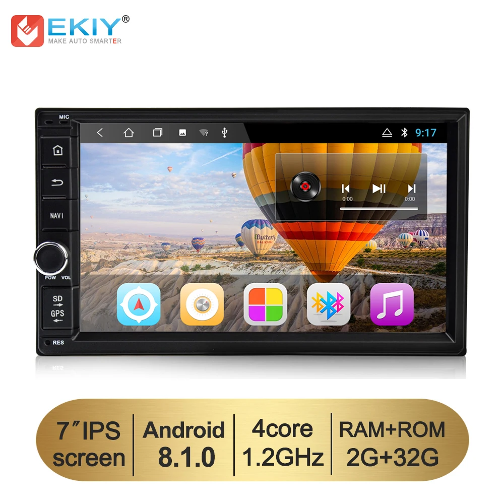 EKIY 7'' IPS 2 Din Android 8.1 Universal Car Multimedia Player GPS Navi Stereo Radio Video Player 2G 32G Wifi BT USB Autoradio Notice: If your car isToyota or Nissan, pls remark in the order so that we can change the power cable toToyota or Nissan Cable for free for you. Thank you! Description: Universal for most of cars Tip: Although we have made every effort to ensure this item is compatible with the listed vehicles, please ensure you have the correct shape / size OEM unit before purchasing. Feature: GoogleAndroid 8.1.0Operation System. Android system and vehicle system integrate harmony T3Quad-CoreCortex A71.2GhzCPU, RAM2GB, ROM32GBInternal Memory 7 inchMulti- point capacitive Touch screen,HD1024*600Resolution displaying screen, IPS screen optional. Support external GPS Card/SD/USB slot up to4*32GB(Not Included) Built-inWiFiModem, support 802.11b/g/n WLAN Standard, High Performance, Low Power Consumption, Support Mobile Phone WIFI hotspots. Support3G/4GInternet, support extral USB Dongle: WCDMA,EVDO,TD-SCDMA.If you need it, you can buy it from us. DIY Main Menu Display: You can drag Search Bar, Weather Forecast widgets, Music/Radio/BT-Stereo Player,Apps or other Bookmarks on main menu to display DIY wallpaper from Gallery Pictures Built-inMirror link. It can connect with Iphone via Wifi hotspots and connect with Android mobile phone via USB data cable and Wifi Hotspot. The mobile phone image will display on DVD, also music, video, game. For Android mobile, the DVD touch screen can control the mobile.(Please note: It can support a part of Android mobile not all of them) Support GoogleMaps onlineNavigating, Support various Android navigation software including Sygic/IGO 8, and etc Support AndroidMultimedia Player, it can play Music/Movie/Photo from local Disc or connected TF Card. Online Entertainment, support online video, TV, movie, music, radio, Youtube, Yahoo, MSN... Online Communication, keep connected through WeChat, Twitter, Facebook, Gtalk, Gmail and other services Supportread and edit Official Software, WORD/EXCEL/POWERPOINT/PDF/TXT. SupportGoogle Play Store, you can download thousands of Apps from here and you can down many popular games like Fruit Ninja, Feed the Candy, Angry Birds, Fieldrunner, speed forge 3D... Support 3D Games, HD Video,1080P, H.264, DIVX Live images Formats Support HD Videos up to 1920*1080 pixels, Photo up to 4096*4096 pixels SupportBluetooth hands-freefunction, built-in microphone Support A2DP Bluetooth, built-inTDA7851Lamplifier chip, can playstereomusic through Bluetooth from your Phone,DSP(Digital Signal Processer) function optional to get much more high quality audio. Download phone book function, you can download contact information from your phone to this unit Support the newest Phone Book Search, you can search&find a contact member in downloaded phone book,just input the first letter of name, you will find some associated names, then you can choose the right one FM/AM Radio Tuner with RDS,built-in powerfulTEF7786radio chip, good radio sound quality. AM Range: 522-1620(Europe), 530-1710(America), 522+1620(Russia), FM Range: 87.5-108(Europe), 87.5-107.9(America), 65.0+108.0(Russia), RDS support AF,TA,PTY,ect. SupportRear View Camerainput and reverse trigger Control Built-in CarDVRSystem, just connect with a USB Camera to use Car Record function. the records will be saved in GPS card automatically, and you can play saved record on this unit directly. Support DVB-T T2/MPEG2/MPEG4/ISDB-T Box input(TV box isn't included) SupportSteering Wheel Control, With this function, you can intently focus on the driving and choose your favorite music safely on the move. (This function can only work with the car which supports analog signal) SupportOBD TurqueFunction. you can connect OBD Dongle(Not included). Combined with vehicle detection software that can read car each sensor date, real-time detection auto state, providing real-time valid reference data for traffic safety. SupportEurope Digital Audio Broadcasting(DAB),you have to buy a USB receiver and antenna from us. Only work in Europe area Built-In Clock and Calendar, it has a Real Clock to show time, Clock/Date/Week adjustable Choose more than 80 kinds open unit logos and Radio Area in Factory Settings Multi-Languages: it has more than 70kinds of languages to select 4 x 48w Surround Stereo, 2 Route Video input, 2 Route Audio input, 2 Route Video output, 4 Route Audio out put, 1 Route Subwoofer output SupportDual Zonefunction, while Navigating you can listen music Hand Brake Control, electronic Anti-Shock, Last Position Memory Split screenmode(Multi-window view) allows you to run two apps side by side. (But please note that can not support two apps both have Audio output.)