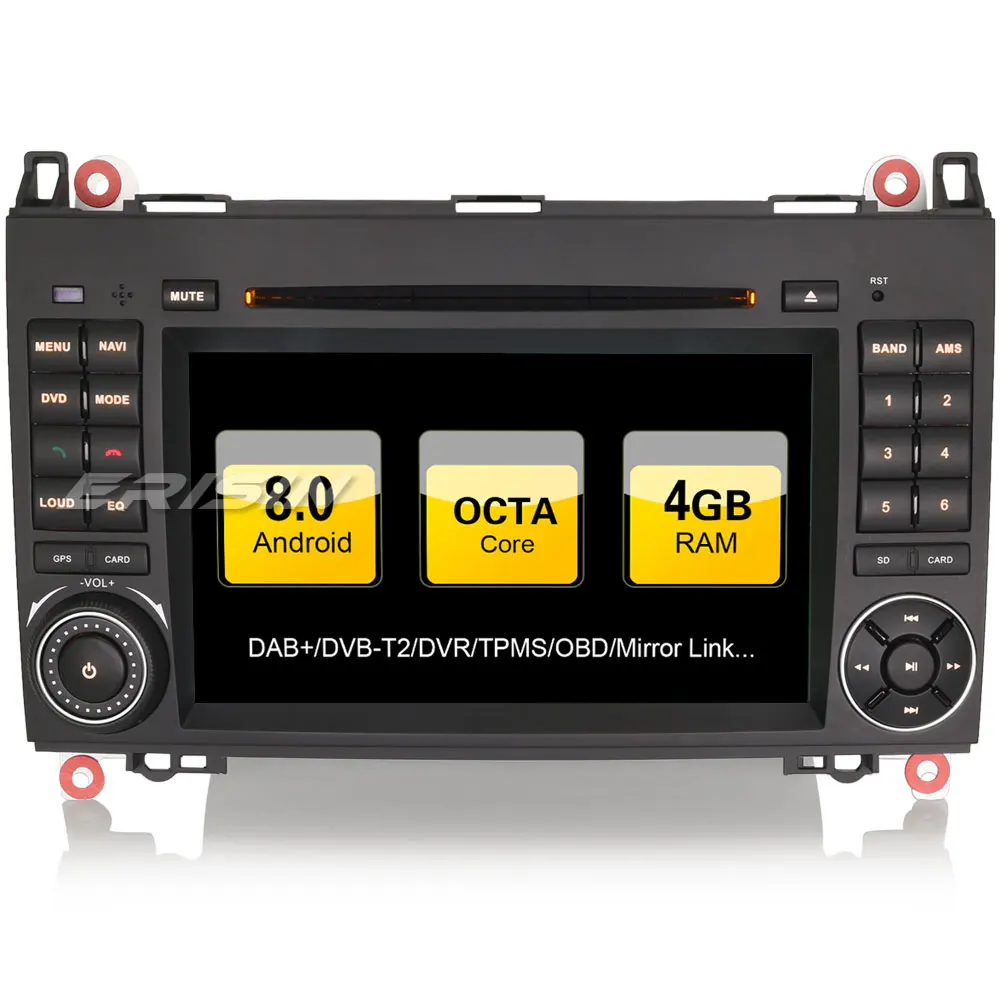 KEY FEATURES:This unit is the best android car multimedia system on the market, 8-Core with high-speed processing, the most functions can be compared with your smartphone7" All-in-One Design for Mercedes BENZ A B Class Cars with CanBus Decoder. Adopt the newestAndroid 8.0 Oreo OS, 1024*600HDCapacitiveTouch Screen,Octa Core1512MHz CPU,4GBRAM and32GBInternal Storage, Support extended 2 Card/2 USB Stick up to4*32GB. it has special Port forDigital TV Box, you can connect ourDigital TVBox to achieve touch operation, and this item can power on the connected DTV Box. built-inDAB+App, just connect with our DAB+ Box to use this function. built-inTPMSApp for display Tire Pressure Monitoring System, just connect with our TPMS product through USB to use this function, and built-inDVRApp, just connect with a USB Camera to use Car Record function. the records will be saved in Card/USB Storage automatically, and you can play saved record on this unit directly. SupportMirror Linkfor iPhone and Android SmartPhone.Support Torque Pro (OBD2 & Car), you can connect a ES350 Bluetooth OBD2 Scanner Tool to use this function.most popular and strongest function:Support 1080P Videos/live images/2160P Photos, support PDF/WORD/TXT/EXCEL, Audio/Video/Photo media Player, surf Internet through 3G/4G or WiFi, support Google online maps and Free Android offline maps GPS Navi, get access to thousands of apps, games on the Google Play Store, keep connected through Twitter, Facebook, Gtalk, Gmail, WeChat, Skype and other services, play popular games like Fruit Ninja, Feed the Candy, Angry Birds, Big Fish, Air Attack... Radio, RDS, Bluetooth, DVD, USB, SD, CAM-IN, AUX, Steering Wheel Control, Live Wallpaper, DIY Wallpaper- This unit will fit the following car model: Mercedes Benz A-Class W169 2005 to 2012 Mercedes Benz B-Class W245 2005 to 2012 Mercedes Benz Sprinter Viano Vito 2006 onwards VW Crafter 2006 onwards Note: This unit has front panel size244mm(Top width)*130mm(High)*240mm(Bottom width), please check your dashboard size before bid to avoid mistake- GoogleAndroid 8.0 OreoOperation System, Beautiful and fashionable UI Unique Design- 7" Five-Point TouchCapacitiveScreen,1024*600HD Digital Screen- SupportSplit Screen, you can run two apps side by side-Octa-CoreRockchip PX5 Industrial-grade Chips,1512MHzCortex A53 CPU-4GBRAM,32GBInternal Memory, support extended 2 Card/2 USB Stick up to4*32GB-DIY Main Menu Display:You can drag Search Bar, Music/Radio/BT-Stereo Player, Apps or other Bookmarks on main menu to display- Built-In Clock and Calendar, Clock/Date/Week/Time Zone adjustable, can use GPS or network-provided time- Multi-Languages: it has more than180 languagesto select- Button Light Color inOrangejust same as your original car radio and electronics-5live wallpapers,29wallpapers, supportDIY User's wallpaperfrom Gallery Pictures- Built-inWiFiInternet and support external3G/4GInternet, 3G/4G Dongle is not included- Support Google Mapsonline Navigating, you can use GPS Navigating if you are in Internet- SupportAndroid Maps Navigation, you can use Free offline maps navigation.- SupportAndroid Multimedia Player,it can play Music/Movie/Photo from local Disc or USB/SD.-Online Entertainment, support online video, TV, movie, music, radio, Youtube, Yahoo, MSN-Online Communication, keep connected through WeChat, Twitter, Facebook, Gtalk, Gmail and other services- Support read and editOfficial Software, WORD/EXCEL/POWERPOINT/PDF/TXT.- SupportGoogle Play Store, you can download thousands of Apps from here and you can download many populargameslike Fruit Ninja, Feed the Candy, Angry Birds, Fieldrunner, speed forge 3D...- Support3D Games, HD Video, 1080P, H.264, Divx Live imagesFormats- Support HD Videos up to 1920*1080pixels, Photo up to 4096*4096 pixels- SupportBluetooth hands-freefunction, built-in microphone and external microphone Jack.- SupportA2DP Bluetooth, can play stereo music through Bluetooth from your mobile Phone-Download phone bookfunction, you can download contact information from your phoneto this unit- Support the newestPhone Book Search, you can search & find a contact member in downloaded phone book, just input the first letter of name, you will find some associated names, then you can choose the right one- SupportTorque Pro (OBD2 & Car), you can connect a ES350 Bluetooth OBD2 Scanner Tool to use this function.- Support the newestMirror Linkwith iPhone via WiFi and with Android Smartphone via USB or WiFi- Built-inDiscPlayer for your CD, VCD, DVD..., Decode IC: 8202TQ-RadioTuner withRDS, 78 Preset Radio Stations (FM: 3*18, AM: 2*12), Main Chips: TEF6686-USBPort and MicroSDSlot, Support USB Stick and Memory Card up to 32GB- Built-in CarDVRSystem, just connect with a USB Camera to use Car Record function. the records will be saved automatically in Card/USB Storage and you can play saved record on this unit directly.- Built-inTPMSSystem, just connect with a TPMS product through USB to use this function- Built-inDAB+System, just connect a DAB/DAB+ Box with USB Port to use this function.- SupportDigital TVBox (DVB-T/T2, ATSC, ISDB) input, Touch Control and Power supply- SupportRear View Camerainput and reverse trigger Control- SupportSteering Wheel Control, Hand Brake Control- Electronic Anti-Shock, Last Position Memory General- Power Supply: DC 12V (allowance range: 10.8-14.5V)- Max. Current: 10A- Screen Size:7 inch- FrontpanelSize:244mm(Top width)*130mm(High)*240mm(Bottom width)- Package Size:340mm*270mm*190mm- Shipping Weight:4.5kg System-Operation System:Google Android 8.0- CPU:Rockchips PX5 1512MHz Cortex A53- RAM:4GB- Internal Memory:32GB- Extended Card/USB:Support USB/SD up to 32GB Display- Touch Screen:Yes- Resolution:1024*600- Capacitive or Resistance Screen:Capacitive- Built-in Clock and Calendar:Yes, show real time and can use network-provided time- DIY main menu display:Yes, You can drag Music/Radio/BT Stereo Player, Search bar or App-Icon to main menu- Change Apps-Icon Position:Yes Internet- WiFi Interne