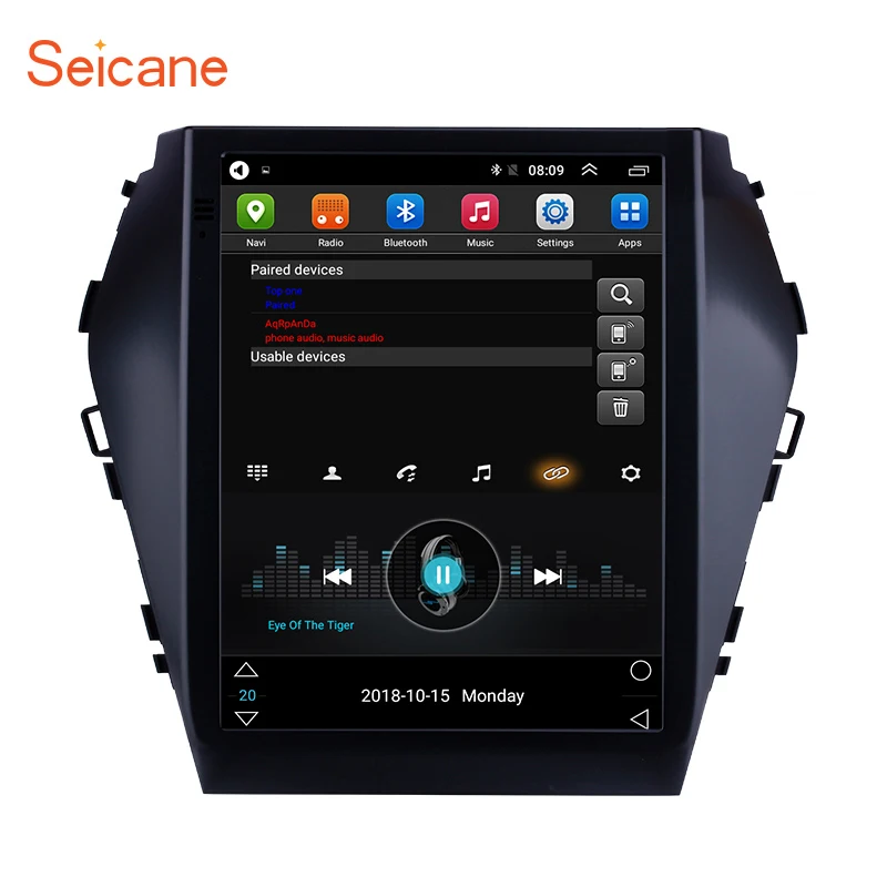 Seicane 9.7 Inch Android 6.0 Car Radio WIFI Bluetooth Multimedia Player GPS Navigation For 2015 2016 2017 Hyundai Santafe IX45 Overview 3G&WiFi/App download/3D Navigation/Radio Tuner/Bluetooth/Dual Zone/ File Management/HD 1080P Video/Steering Wheel Control/Mirror Link/OBD2/DVR/Backup camera/MP3/AUX/USB/SD etc. Configuration OS: Android 6.0 CPU: High quality Quad Core A53 1.5GHz processor GPU: with Mali-600MP4 Quad-core GPU Hard Disk: 32 GB INand Flash RAM: 2GB Samsung DDR3 Features High Speed 3G&WiFi Internet: The system supports surfing internet via 3G or WiFi. It comes with WiFi module. You can perform Google search on the road with quick search box, play online games, watch videos, download online data and check emails by connecting to any WiFi hotspot in range or 3g internet. App download: It replaces your factory radio with android based system of great utility and extendibility. You can download any applications in the android market for access to games, Skype, MSN, YouTube, twitter, E-Book, Gmail etc. This system also supports installation or removal of apps on RAM or SD optionally. 3D Navigation: The car stereo is equipped with worldwide real-time navigation function of high accuracy. With current location, speed, mileage, landmark building display, 3D street view, destination search and turn-by-turn voice directions, it will be your perfect road companion. With dual zone function, the music from radio/AV/DVD/TV etc can be played behind the scene under GPS mode and it will switch to the GPS voice automatically. Radio Tuner: Built-in with strong digital FM/AM radio tuner, this car A/V system features searching radio channels automatically, manually and storing them in the process. RDS is also supported. Bluetooth: It upgrades your car with BC8 Bluetooth module for hands-free calls and music streaming. With ringtones and voice coming out from the car speakers, you can dial, answer, reject and mute calls without taking your hands off the steering wheel. Its phonebook function enables you to search for contacts directly on the big screen of the head unit. The capability to stream your favorite tunes from the Smartphone wirelessly is also desirable. An internal microphone is included for distortion-free talking. Office Tools: You can read and edit office files such as WORD/EXCEL/POWERPOINT/PDF/TXT on it as your tablet. File Management: With file browser, you can open files with the corresponding applications, search files and manage them. HD 1080P video: HD 1080P video playback is supported by this car DVD player. AUX: This function is for audio, video input and output from external devices. Steering wheel control: Your original car’s steering wheel controls will still work after installation. 32GB USB/SD Connection: with USB and SD slots of 32GB capacity, this unit allows for audio and video play, photo view, E-book Reading etc from SD or USB. MP3、WMA、AAC、RM、LFAC audio formarts,MPEG-1/2/4、H264、H263、VC1、RV、RMVB、DivX、Sorenson SparK、Spark、VP8、AVS Stream video and JPG/BMP/JEPG/GIF/PNG picture are supported. IPod/IPhone Charging: This multimedia supports charging your iPod/iPhone via the USB cable. OSD Languages: 37 kinds of OSD languages are supported including: Chinese Traditional, Chinese Simplified, Japanese ,Korean ,Arabic ,English (Australia),English (Canada) ,English (new Zealand),English (Singapore),English (United kingdom),English (United States) ,Afrikaans, Bahasa Indonesia ,Bahase Melayu ,Deutsch(Deutschland), Deutsch(Liechtenstein), Deutsch(schweiz), Filipino, Fancais(Belgique), Fancais(Canada), Fancais(France),Fancais(Suisse),Italiano(Italia), Italiano(Svizzera), Kiswahili, Latviesu, Magyar,Nederlands, Norsk bokmal,Polski, Portugues(Brasil), Portugues(portugal), Rumantsch, SlovenCina,Suomi, Svenska ,Pyccknn. Designable Elements: 8 live wallpapers and 21 wallpapers are preset. You can set any picture you like as wallpaper. You are also enabled to DIY startup picture and main menu. Built-in Amplifier: 4 channel output 4*45W Amplifier is embedded into this car audio system. Mirror link: It synchronizes your mobile phone trough WiFi or USB. This technology enables you to gain access to your Smartphone’s applications on the unit to play music and videos etc. It currently supports iPhone, Samsung Galaxy (android 4.2 and above). Options DVD player: With this one din DVD player, you can play CD and DVD discs. With anti-shock and last position memory technology applied, you can watch movie or video in motion. Formats such as DVD/DIVX/MP4/MP3/MP2/VCD are compatible. HD Digital TV: DVB-T/ATSC/ISDB-T HD TV Tuner can be provided for receiving digital TV channels. Car DVR: The DVR function is used for recording the whole process of traffic accidents, taking photos for front of vehicles and storing the video in real-time while driving. 3G module: With this 3g module, you can connect to 3g internet by inserting an SIM card to it. Backup Camera: It adds a backup camera for automatically switching to the parking image while reversing. This option includes a waterproof and night vision backup camera which will be mounted to the position of your car’s license plate lights and the cables for its connection. The default rearview camera is wired. If you need the wireless one, please send a note us after placing order. OBDII: With this OBDII Scanner, you can connect it to your car’s DLC port and open the unit’s Bluetooth for monitoring the car’s fuel consumption, water temperature, revolving speed, environment temperature, intake pressure, throttle position, air flow, computer load, car speed etc in the OBD interface. DAB: Short for digital audio broadcasting, DAB as an advanced digital radio technology for broadcasting radio stations integrates a number of features to reduce interference problems and signal noise. With high-quality sound, it offers more radio programs over a specific spectrum than analogue FM radio. Besides, DAB can not only automatically tu
