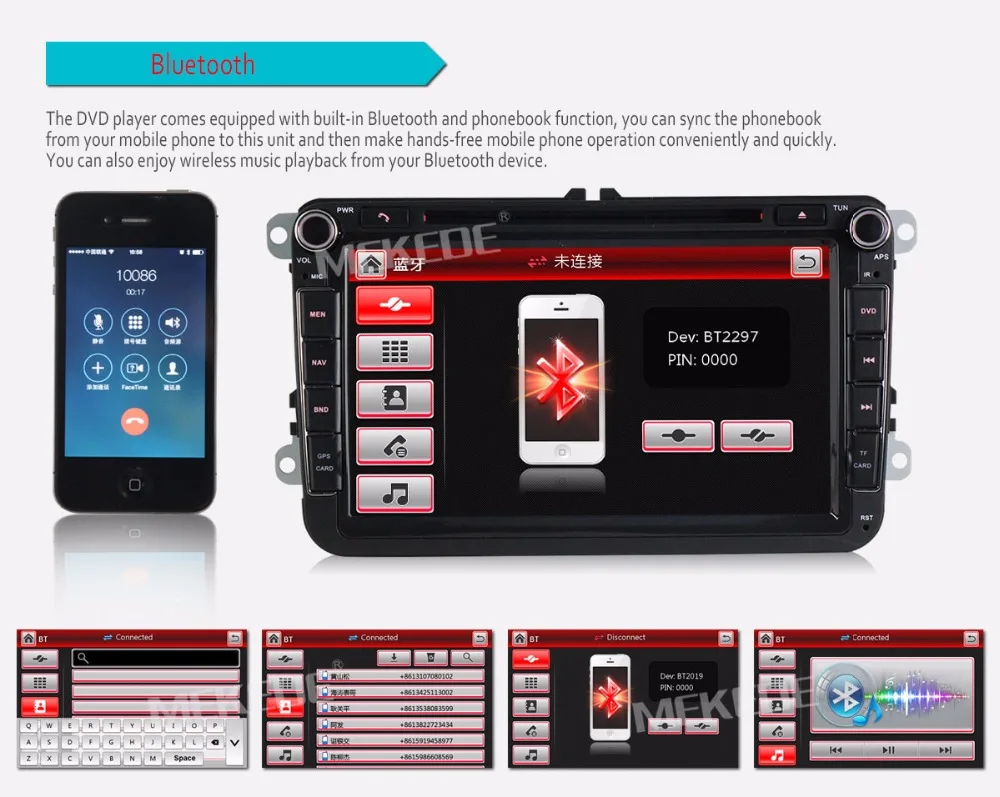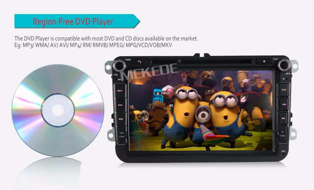 If you have any questions,please feel free to contact me,I'm--Maggie. To :Dear Customers *1.please note:our price is notincluding the customs tax,buyer is responsible on your country costoms tax /duty,please kindly note before your order. *2.if you have any problems of the device,please contacts us before open dispute,we will provide a good solution for you,most dispute are caused by wrong use or installation. *3.we suggest the customers take the products to a car servic store to find a professional person to install it,because wrong installation may demage the device. *4.the price is not include the DHL remote area charge, if your adressis remote area in DHL, you need to pay more 40usd remtoe area charge, if you don't pay it, seller won't ship it by DHL. car dvd player for vw with: 8'' HD capacitive screen+GPS navigation+CD/DVD player+MP3.MP4+AM/FM+Bluetooth /BT+BT music+USB/SD+ipod/iphone 4 4s 5 5s+1080p video player+Support steering wheel control+Rear viewing function input...... newest updating:800*480HD Capacitive Screen MoreSpeedly andSmoothly Touch Feeling than Resistance Screen!! Newest:With both old and new version ISO plugs, support plug in play. For high version of VW, built-in CANBUS, support the steering wheel control, full function original information displaying. For example: Air conditioner, parking sensor and so on. (Note:If your original CD can't display car information, our DVD alsocan't display it) Note :this modelbuttonlight havered and gree,you can connect a samll black cable on the back of device to GND,buttons color will changed for Green. Swich logo between VW or S/k/o/d/a or Seateach other It is easy to handle: Long press VW or S/k/o/d/a logo icon on the main UI, it will automatically swith both logos each other. Note:if you can't make sure, please check the size or contact with us. optional if you need,please go buy with model together * Car rear view camera: $15 (click and go to buy ) * DVB-Tbox:$60 (click and go to buy ) * DVB-T2 box: $80 (click and go to buy ) * ISDB-Tbox: $40 (click and go to buy ) About the map: The 8GB maps card will be inserted in GPS card slot before sending. (we have map for most countries in the world,but without some countries,will give you a empty card) EU MAP:Austria, Switzerland, Liechtenstein, Italy, Belgium, Netherlands, Luxemburg, France, Monaco, Spain, Germany, Greece, Vatican, San Marino, Denmark, Finland, Norway, Sweden, Portugal, Gibraltar, Channel Island, England, Ireland, Lisle of Man, Northern Ireland, Scotland GULF AREA:Saudi Arabia, Oman, Bahrain, United Ara Emirate, Qatar, Kuwait OTHER MAP:America, Canada, Australia, Turkey, Russia, Brazil, Argentina, South Africa, Chile are available Functions: *8inch TFTLCDwith800*480capacitive highdefinitionresolution. *HighperformanceA10+DSPCPUMTK3360NCG800MHZDualCore, Support1080Pvideoformat,compatiblewithMKV,AVI,MP4,RMVB,WMV,MOVetc,Supportoutstorgeto32GB *Built-inGPSnavigationwithGPSantenna,WinCE6.0GPSsystem,support2D/3Dmaps *RDSfunction(forEuropeonly),if you need,please leave message inform us. *CompatiblewithDVD/DVD-R/DVD-RW/DIVX(MPEG4)/VCD/MP3/CD/CD-R/CD-RW *Built-inBluetooth,forhandsfreecall,supportA2DP,withoutanycableconnection,directlyplaymusicfromcellphoneviaBluetoothpair *Phonebookfunction,loadphonenumbertounit,moreeasytomakecallsonthescreen *ReariPodcontrol,leadtheiPod/iPhone44S55S/iPadtogloveboxconveniently *DigitalmobileTelevision(Optional). *FM/AMsupportglobalradiosystem. *AV-INfunction,twocamerasvideoinavailable. *Multi-languagesmenu:English/Portuguese/Russian/French/Spanish/Thai/Arbic/Hebrew/Chinese *Differentwallpapersforpersonalsetting(choosephotofrombuilt-inbackgroundimageandmemorycard). *SupportSteeringcontrolfunction. *Support5.1audioout *Supportsubwoofer *Support10EQband *SupporttouchcontrolifconnectIPOD *Built-inMIC *RCArearviewcamerainput(pleasecheckreversecamerainourstore) Thescreenwillshowreverseimageautomaticallywhenputcarinreverse,itwillbemuchsafeforcarreverse