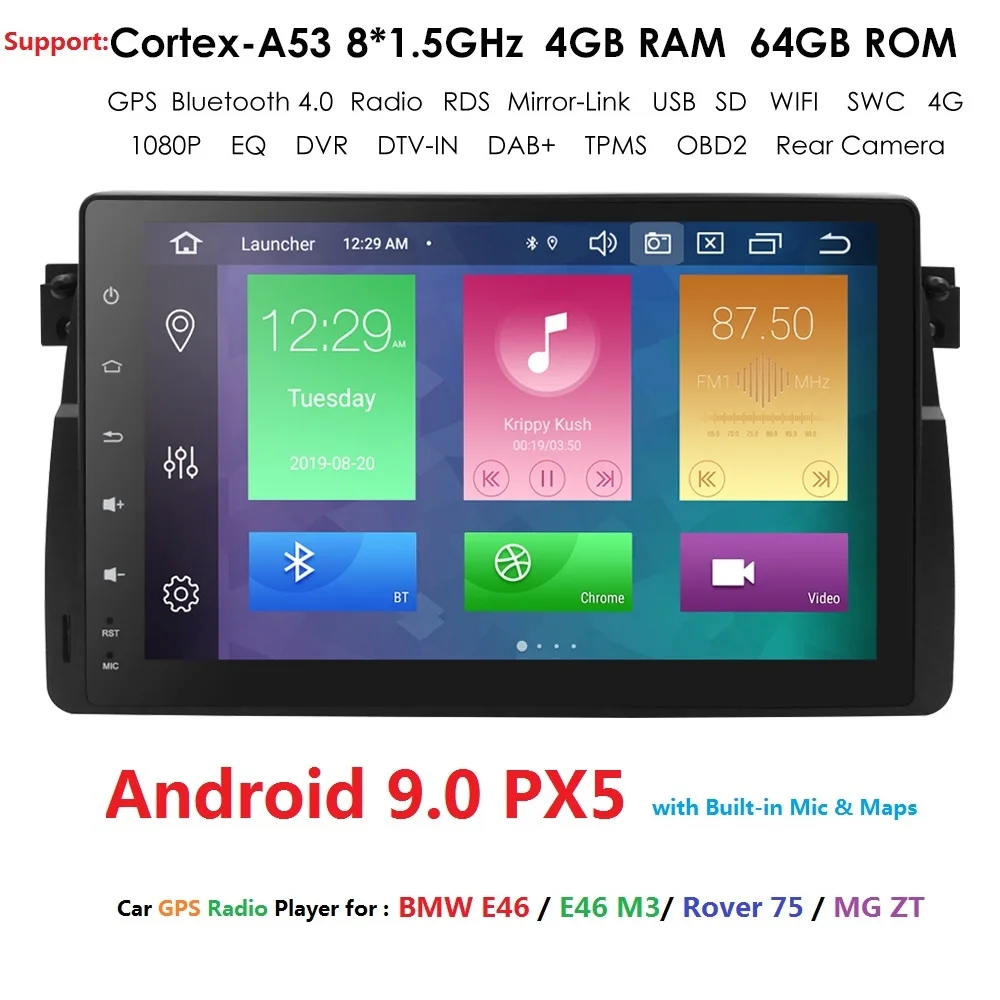 We will showtwo types of the BMW E46 list pictureson here one by one , please kindly to check before bidding .(the first oneis for android 9.0 9 inch BMW E46 with4GRAM+64GROM(the back size is 153mm*180mm*50mm),which on the first list pictures shows ;The last one is forandroid 9.0 7 inch BMW E46 with 4GRAM+64GROM (the back size is 153mm*180mm*50mm),which one middle list pictures shows;will following it. thanks for note it before bidding. the stereo comes with the accessories as the picture of the accessories shows, if you needs other wire cable or accessories for installing ,then you needs to buy separately. If we send it from China via DHL ,If there is customs taxes when arrives your national customs,buyers need to pay for it.If you have special request,please contact us when you make order. The following list picture is forandroid 9.0 9 inch BMW E46 with4GRAM+64GROM(the back size is 153mm*180mm*50mm).Othertype will following it. thanks for note it before bidding. The following list pictures is forandroid 9.0 7 inch BMW E46 with 4GRAM+64GROM (the back size is 153mm*180mm*50mm). thanks for note it before bidding. Important Note: please check your original car radio size and appearancebefore make a orderbid to avoid mistake.