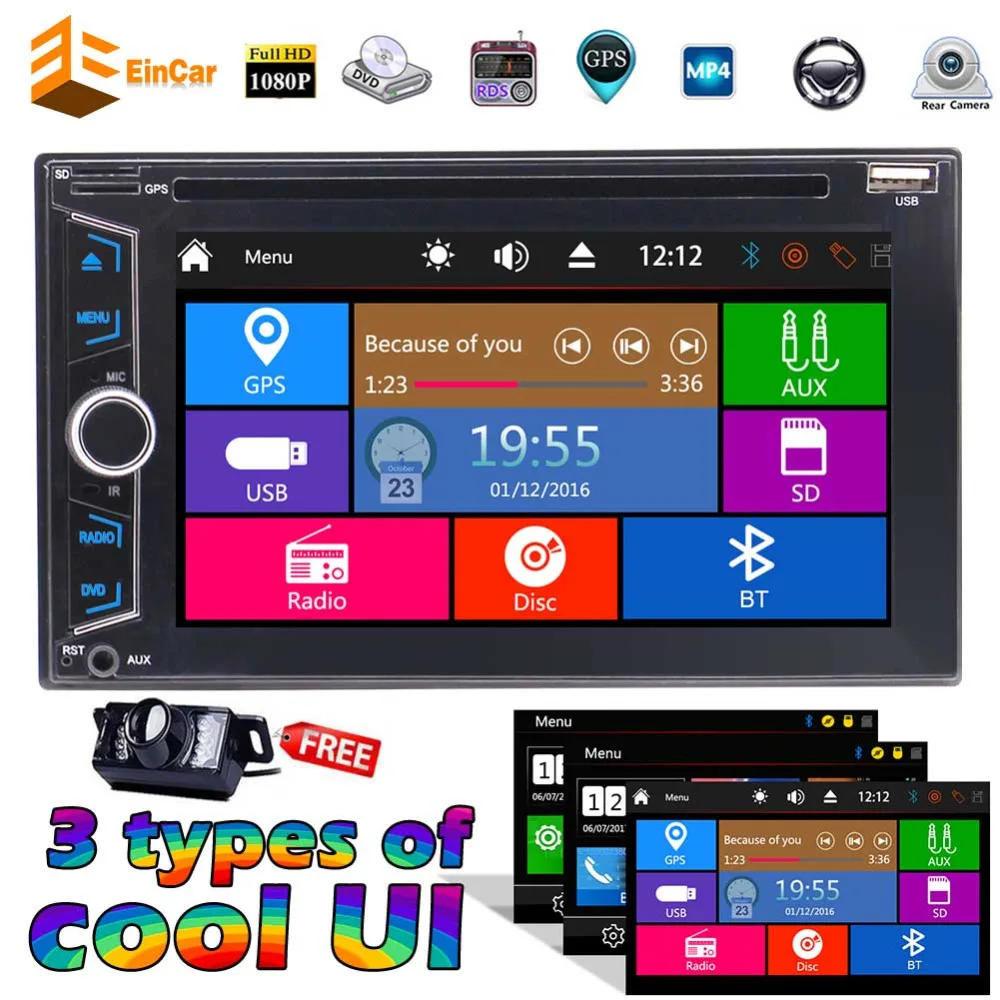 6.2"" Double DIN Car Electronics Stereo GPS Navigation Radio Head Units Touch Screen Car DVD Player In-dash Audio AM/FM Radio Bluetooth USB SD TF music With Backup Camera and Wireless Remote control * 1,With free rear camera, it can show you the rear view automatically when you reverse the car. Multi-choice with preset 3 popular user interface option, which makes this unit so easy to operate with most intelligent, simple, thoughtfully designed interface. UI set code: 1688 * 2,7 color button back light for your choice, you can choose favorite color to match your car. Multi OS Languages(English, Turkish, Italian, Spanish, German, French etc) can meet your individual needs. * 3,Wireless remote control easy to operate this unit will brings a huge convenience for both front & back passengers,Free view backup camera included, which is more cheaper than you buy it alone. * 4,Multi function for system language setting, home background, car logo setting, clock calendar setting, etc. EQ function for you can debug different styles of music, pop, classic, classic, rock, jazz, etc. * 5,Steering Wheel Control:You can change the track, volume conveniently without taking your hands off the steering wheel, much safer than before. Support 1080P video play from CD/DVD and USB port. Free view backup camera Display - Screen Type: 6.2 inch Capacitive Touch Screen(5 points) - Resolution: 800*RGB*480 - Change the button backlight: Yes, 7 colors - Change the UI: Yes, Preset 3 types of popular User Interface Option GPS - Operation System: Microsoft Windows CE - External Memory Size: Can expand to 32GB - Voice Guidance: Yes - Dual Zone: Yes, navigating while music playing - Free 8GB GPS Card included: Yes - GPS Operation Languages: English, German, French, Spanish, Italian, Russian, and etc. Setup - Bluetooth: Auto Answer: On/Off, Auto Connect: Yes/No - Navigation: Volume mixed/Auto to Navi when power on - EQ Setup: Yes - Sound: User/Pop/Rock/Jazz/Class - Steering Wheel Control: Yes - Menu Languages: English, Russian, French, German, Italian, Spanish, Portuguese, Arabic... DVD - Decode IC: Integrated - Compatible Format: DVD, DVD-R/RW, HDVD, MP3, MP4, CD-R/RW, VCD, DIVX, WMA/JPEG - Last-Position-Memory: Yes, expediently watch all kinds of disc continuously USB/SD - USB Position: On the Front Panel - Capacity: 32GB - Play Video: Yes, can play 1080P Video - SD Position: On the front panel Bluetooth - Hands Free: Yes - A2DP (Bluetooth Stereo Music): Yes, can play stereo music through Bluetooth - Bluetooth Music Control: Yes, play/pause/previous/next - PB-Download: Yes - Calling Records: Yes, Dialed Call, Received Call, Missed Call - Built-in Microphone: Yes, on the front panel Radio - AM Frequency Range: 522-1620KHz - FM Tuning Range: 87.5-108MHz - FM Area: Europe/North American/South American/Japan/Russia - RDS: On/Off - Preset Stations: 30(FM 3*6, AM 2*6) Input - AUX Video In: One - Rear-View Camera Video In: One - AUX Audio In: R/L - Radio Antenna In: One - GPS Antenna In: One